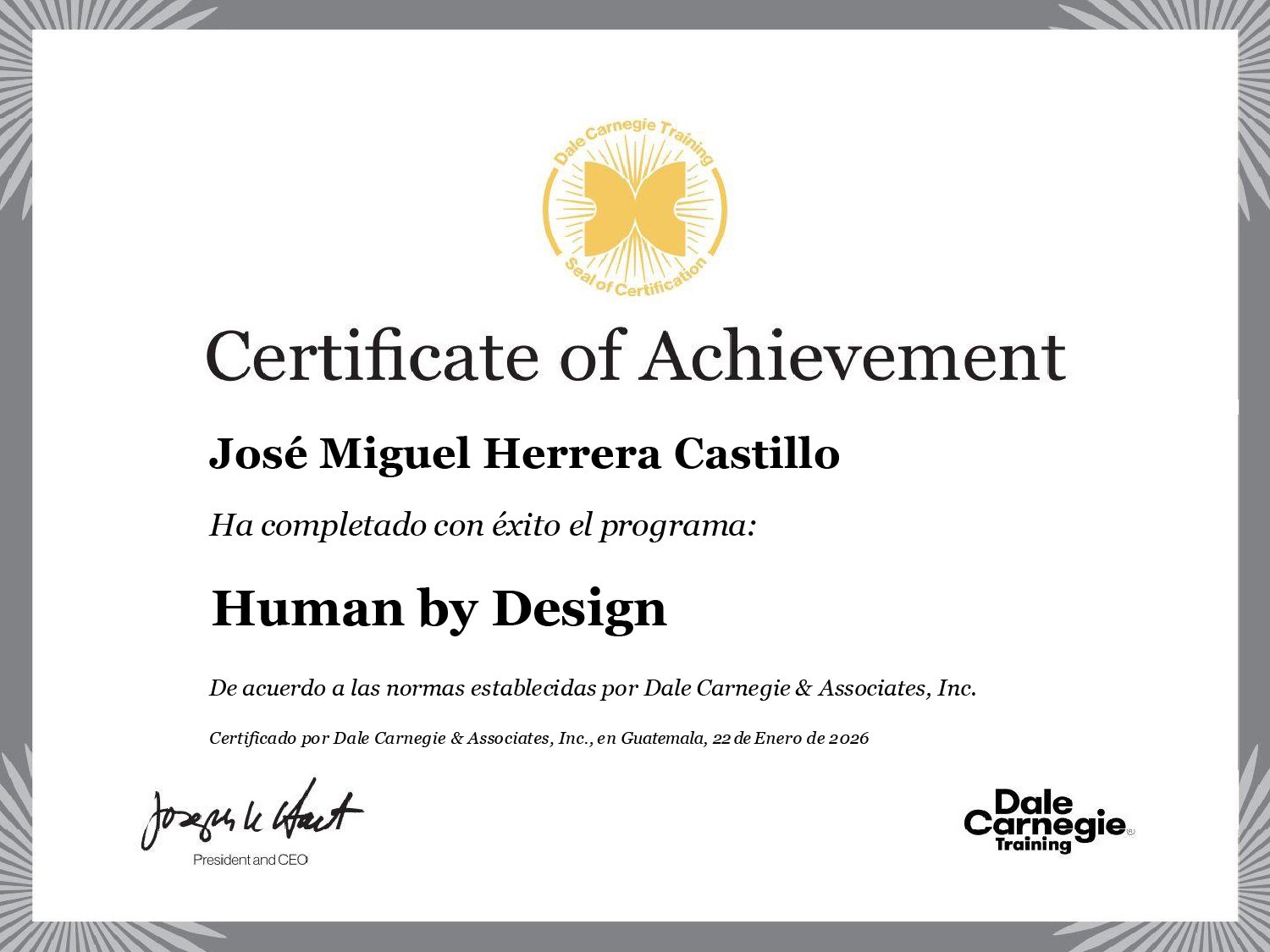 Al concluir el programa, obtienes un certificado oficial emitido por Dale Carnegie, que respalda tu formación y certifica tus competencias con reconocimiento y validez internacional.